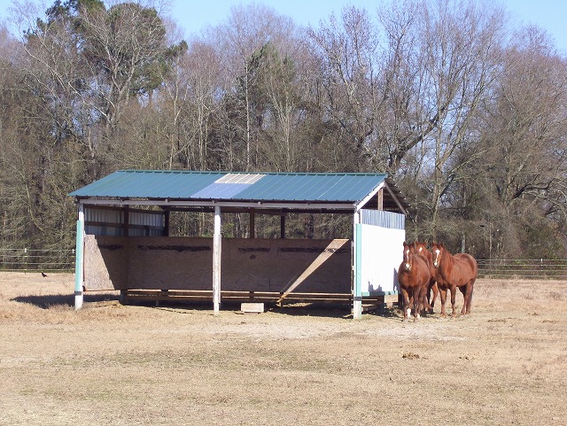 放牧地の馬達は万全な風対策