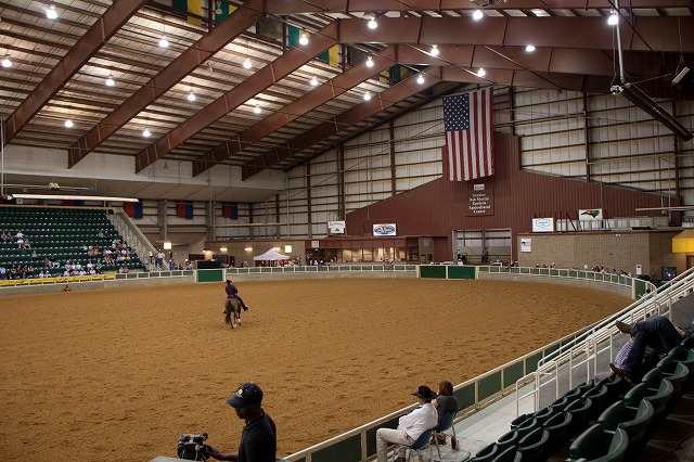 ウォーミングアップ用の馬場があり、